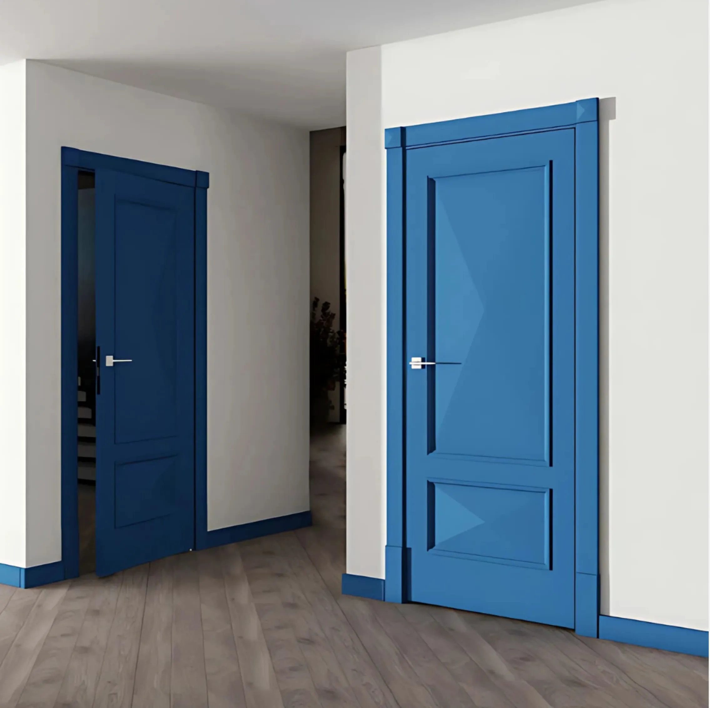 Отделку межкомнатной двери можно выбрать под дизайн интерьера: натуральный шпон или окрашивание эмалью в нужный цвет. Доступна опция для более сложного исполнения — отделка в шпоне и сверху нанесение краски по мировым палитрам RAL или NCS.