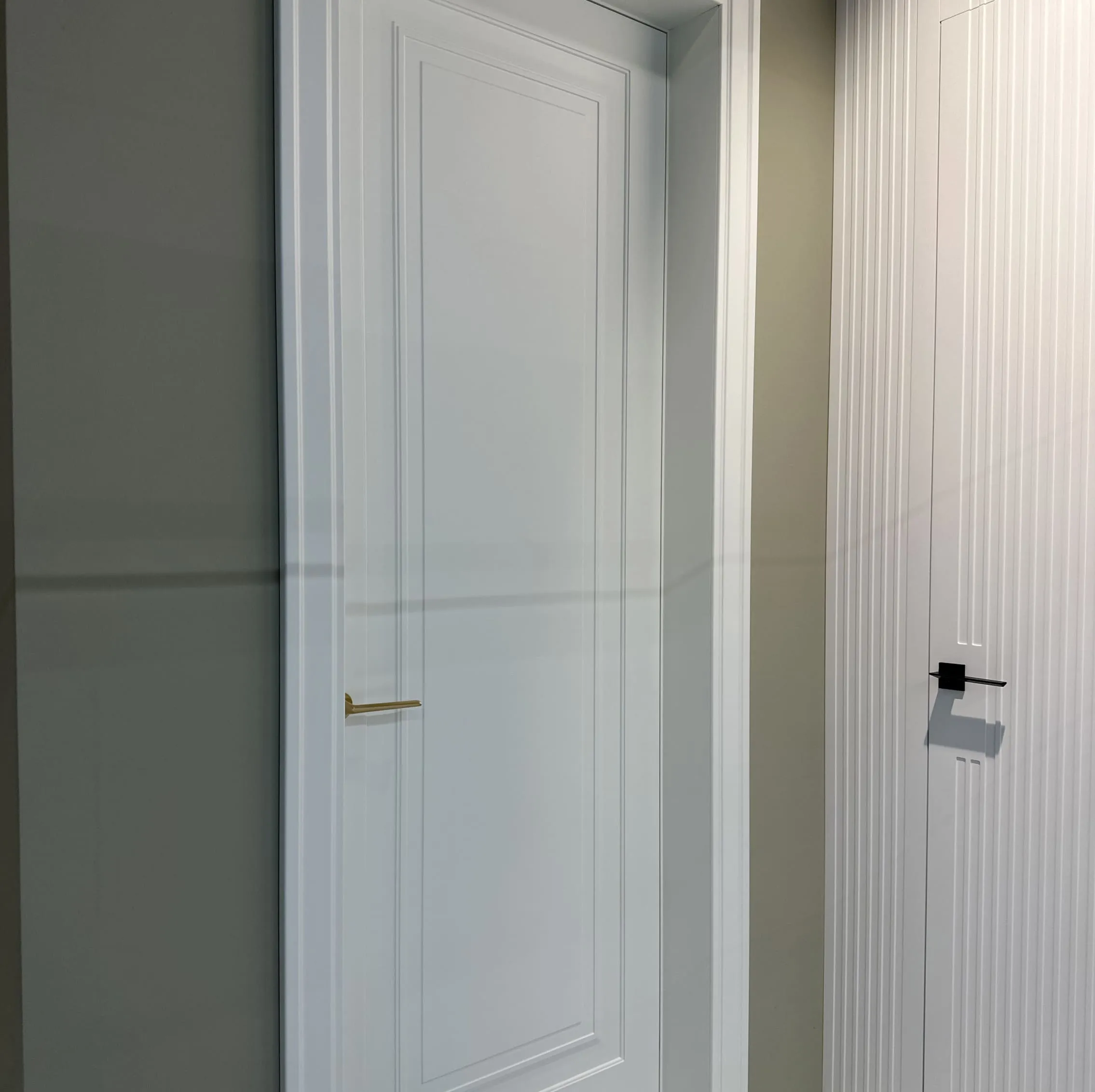 Межкомнатные двери в неоклассическом исполнении с отделкой из матовой эмали. Возможна окраска в стандартных цветах или по палитре RAL.