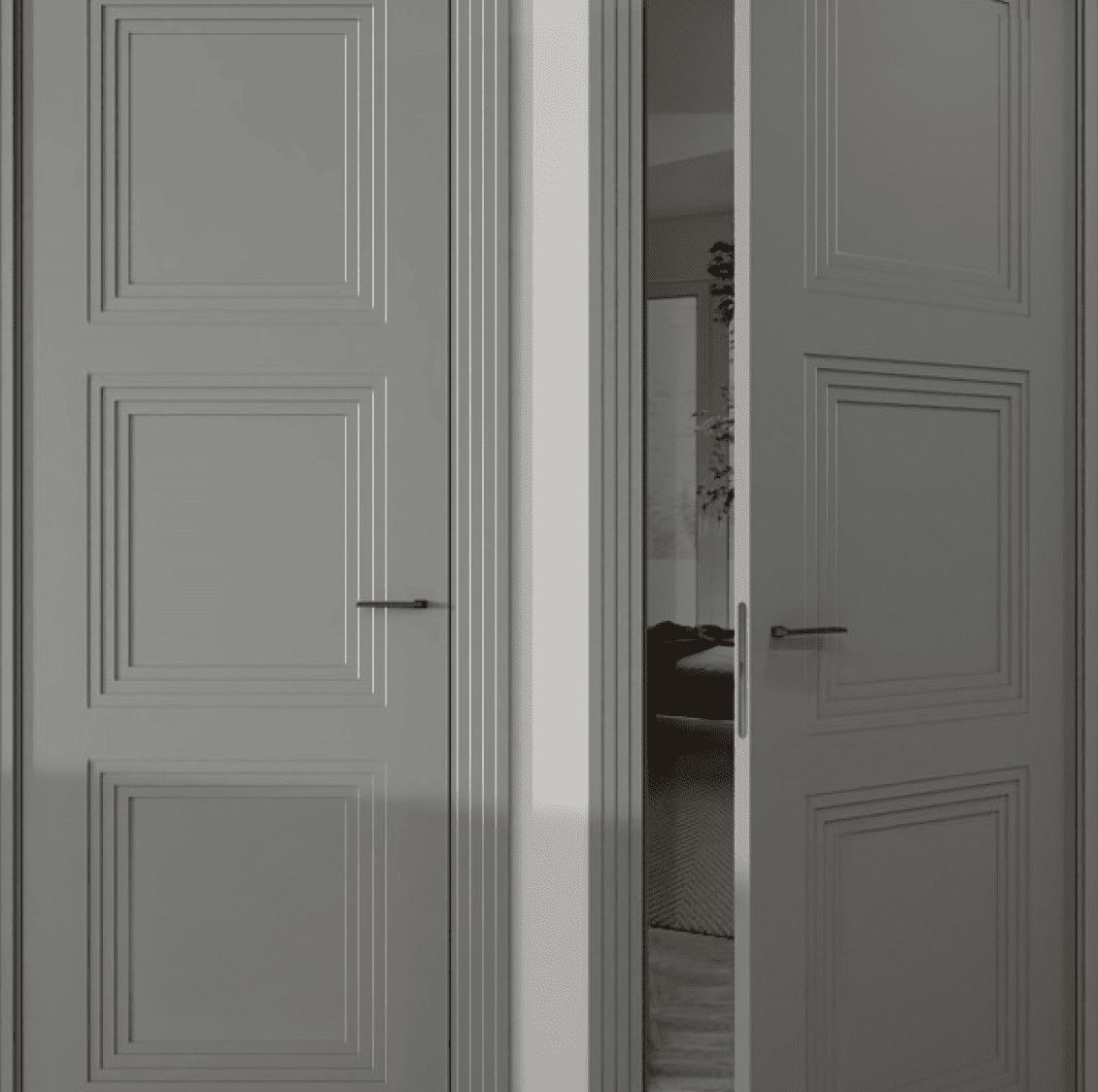 Межкомнатные двери в неоклассическом исполнении с отделкой из матовой эмали. Возможна окраска в стандартных цветах или по палитре RAL.