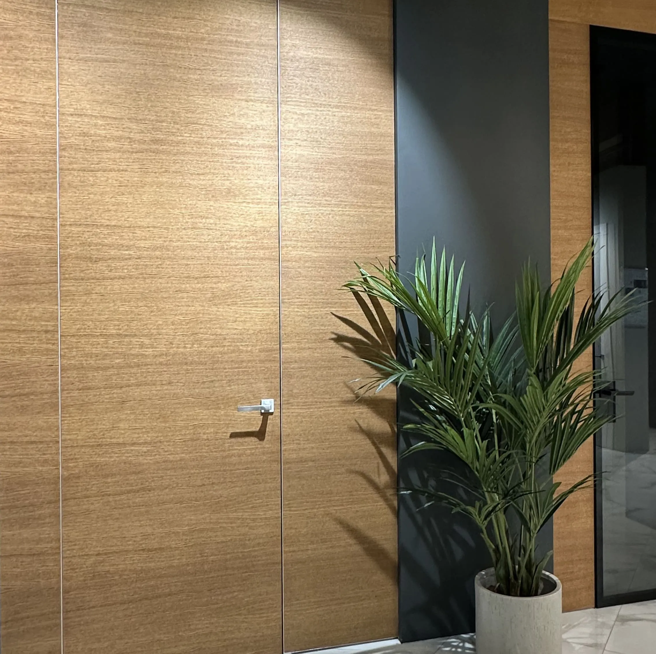 Шпон с прямым направлением подчёркивает природную структуру древесины. Такая отделка гармонично смотрится в строгих и современных интерьерах, создавая цельную линию благодаря сдержанной фактуре.