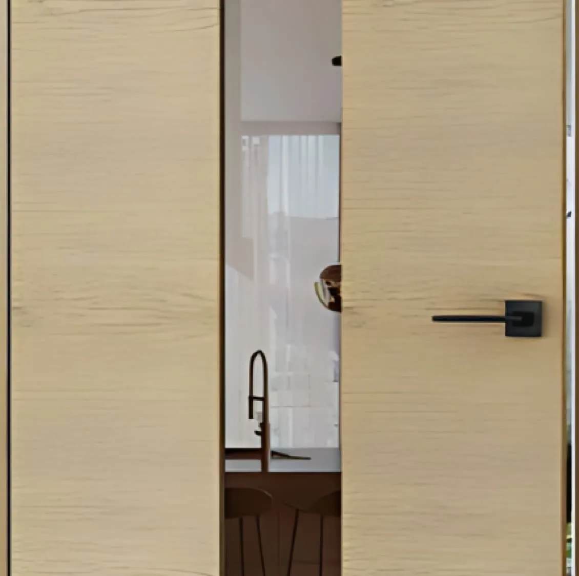 Наличник и полотно визуально сливаются в одну плоскость, и зазор между ними становится незаметным.