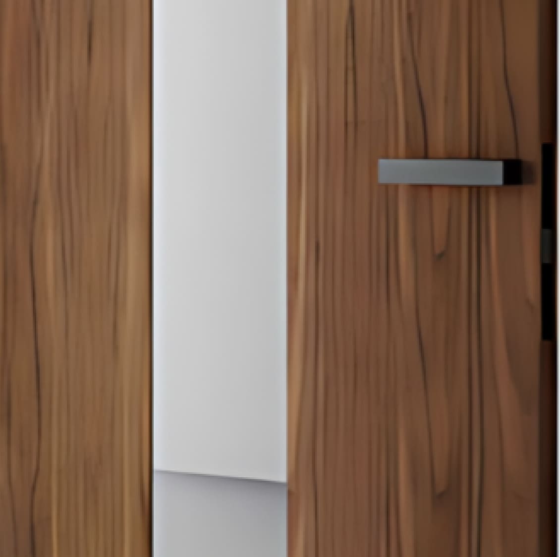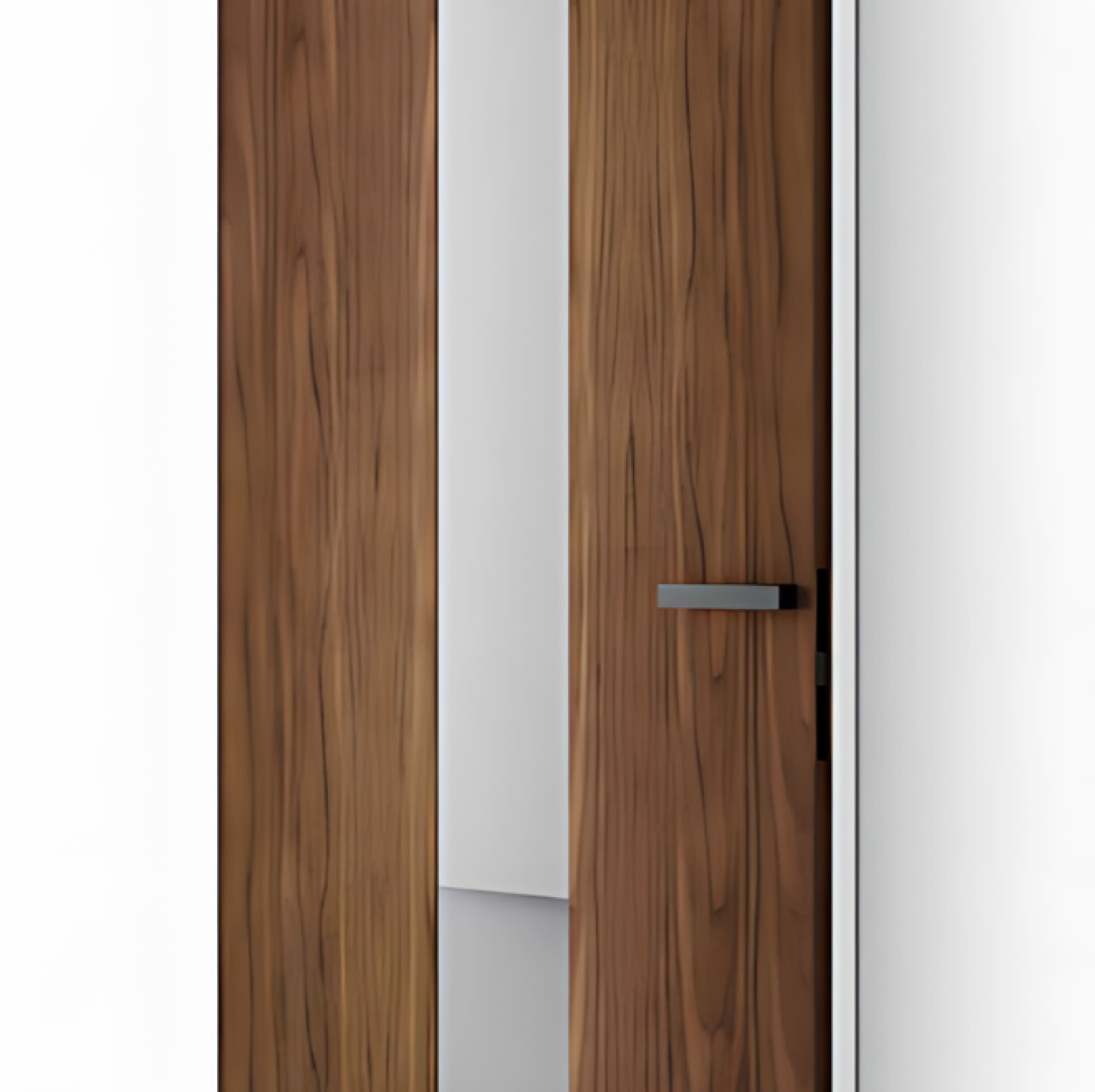 Сочетание шпона и матового стекла объединяет тепло древесной текстуры и лёгкость стекла. Такая отделка подойдёт для уютных современных интерьеров, обогащая их природным рисунком.